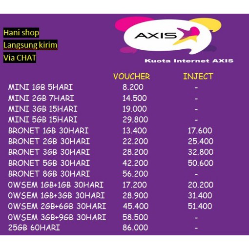 Source: pic.aeriebsd.org Paket internet axis voucher brownet owsem vocer owsem 3gb + 9gb 4g 30 hari harga umum rp.59.849 harga reseller rp.59.549 stok: