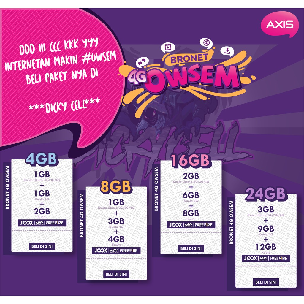 Source: cf.shopee.co.id Bronet 4g owsem 2gb + 6gb (4g) 30hr: Bronet 4g owsem 2gb+6gb(4g) 30hr bronet 4g owsem 2gb+6gb(4g) 30hr tersedia: Owsem 2gb + 6gb 4g, 24 jam, 30 hari: Axis bronet 4g owsem 2gb+6gb(4g)+8gb(joox / aov/ free fire) 30hr. Bronet 24 jam 2 gb 30 hari: